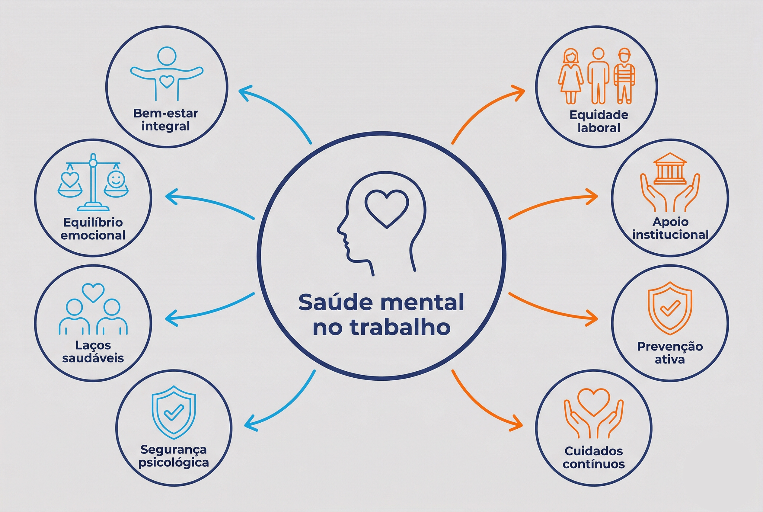 É um estado de bem-estar que permite ao profissional lidar com as demandas do ambiente corporativo, manejar o estresse, manter a produtividade e construir relacionamentos saudáveis. Vai muito além da ausência de doenças: envolve segurança psicológica e condições justas de trabalho.