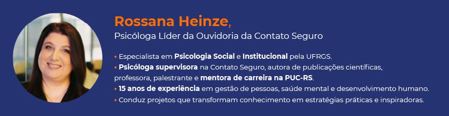 Como resume Rossana Heinze, Psicóloga Líder da Ouvidoria da Contato Seguro: